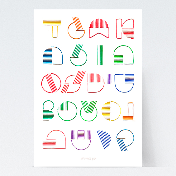 A Bauhaus-inspired alef bet, made of colored clay as part of the 22HebrewLetters project.